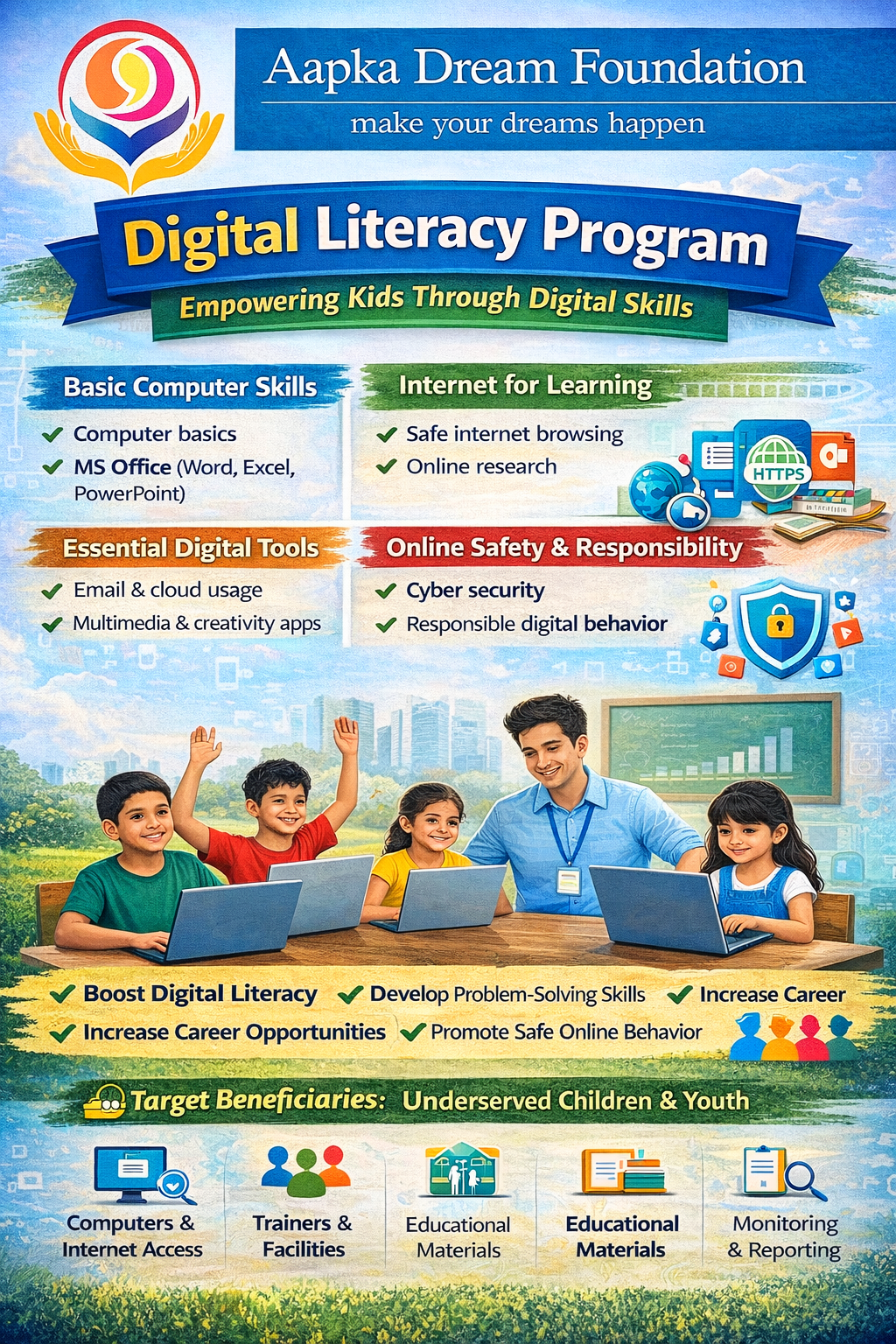 The ADF Fit Life Program is a flagship initiative of Aapka Dream Foundation, designed to promote a healthy, active, and disciplined lifestyle among children from underserved communities. The program focuses on providing free of cost weekly fitness training, including physical exercises, yoga, and sports activities, ensuring that every child gets an equal opportunity to stay fit and active. A unique feature of this program is its structured monthly assessment model. Every second Saturday of the month, a Fitness & Sports Competition is organized where children actively participate and showcase the progress they have made through weekly training sessions. These competitions help in evaluating improvements in fitness levels, stamina, confidence, discipline, and teamwork. Through continuous engagement, the program encourages children to become more health-conscious, adopt positive daily habits, and understand the importance of physical and mental well-being. It also creates a safe and motivating environment where children not only learn but grow holistically. The program primarily targets children aged 6 to 16 years from communities where access to fitness facilities and structured sports activities is limited. By bridging this gap, ADF aims to build a generation that is physically strong, mentally resilient, and socially confident. With the support of donors and partners, the ADF Fit Life Program continues to expand its reach and impact. Contributions help in organizing training sessions, conducting monthly competitions, providing sports equipment, and ensuring smooth program implementation.
